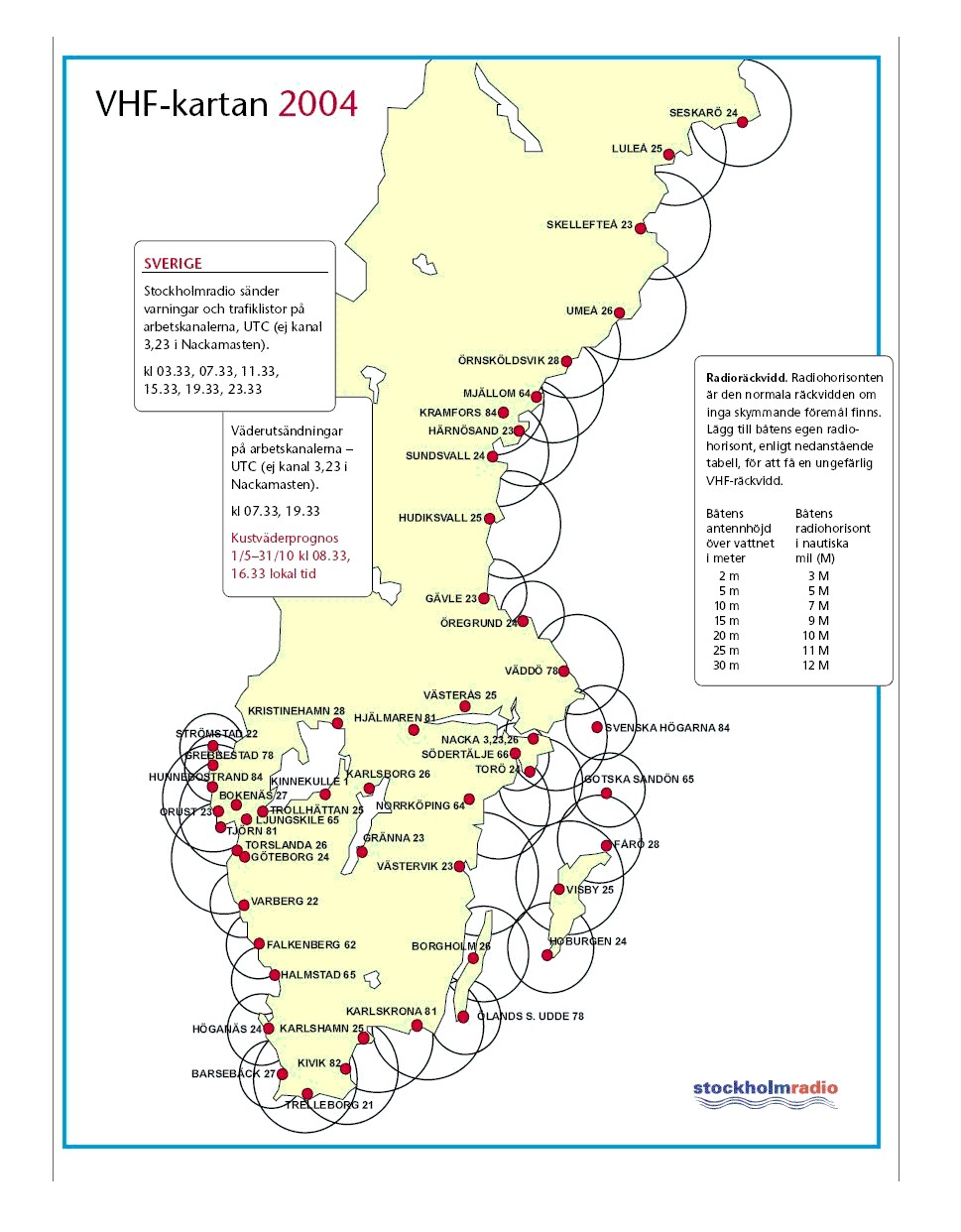 Übersichs-VHF-Karte von Stockholm Radio